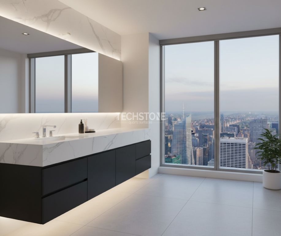 - Durability & Easy Maintenance: Engineered for long-lasting performance, Techstone Quartz is nonporous, stain-resistant, and easy to clean. It prevents moisture absorption and resists bacteria growth—making it a safe, hygienic choice for bathrooms.